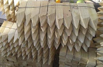 Objeto largo y afilado que se clava en el suelo como marcador de una sección de terreno, para señalar metrajes, asegurar postes u otra estructura similar. Usualmente se utiliza en madera tornillo. Medidas estándar 1” x1" - 1.1/2” x 1.1/2”